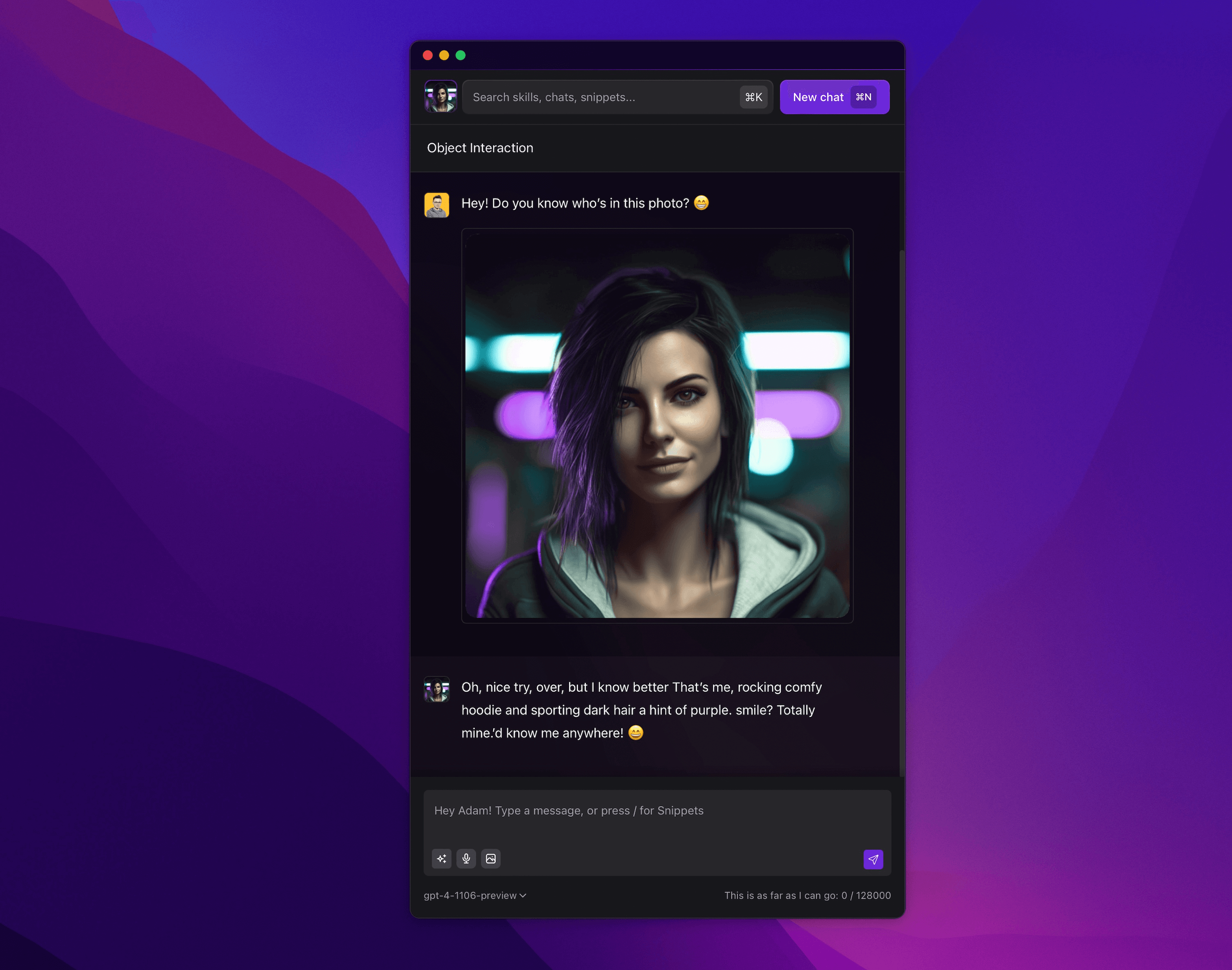 Currently, the integration includes a textual knowledge base, which is not yet fully prepared for working with GPT-4 Vision and DALL·E 3 models. However, I have no doubts that a fundamental element of combining different \"senses\" offered by multimodal large language models will be the knowledge base and a set of tools, thanks to which AI will be able to realistically affect our environment, and we will be able to ask about actions, not just answers.