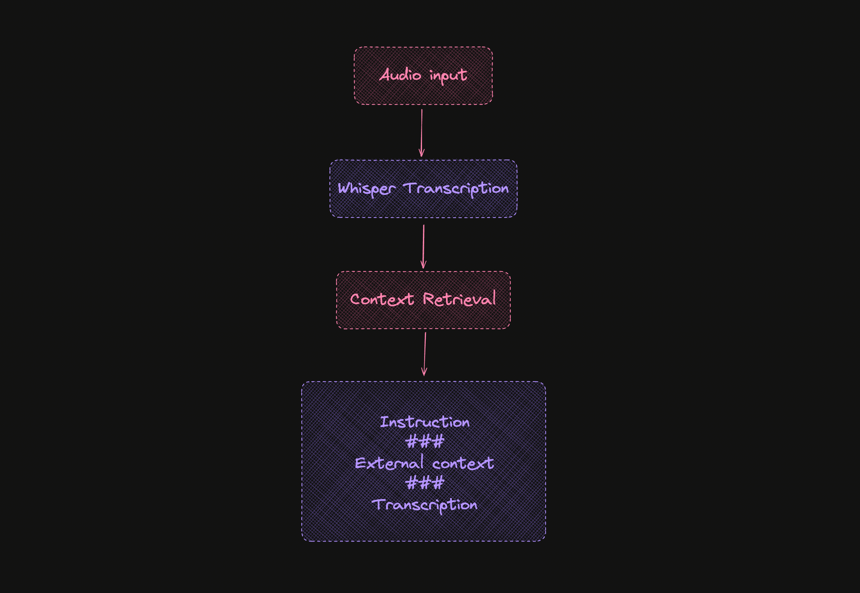 A slightly more advanced option is to process the generated transcription through an LLM, where, in addition to the transcription, an instruction is also included based on which the text will be processed according to our expectations. There is also nothing to prevent the instruction from being enriched with additional external context, which will also influence the final response.