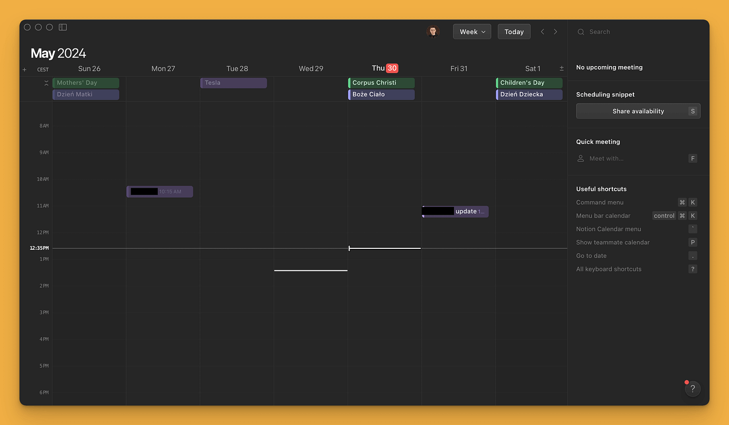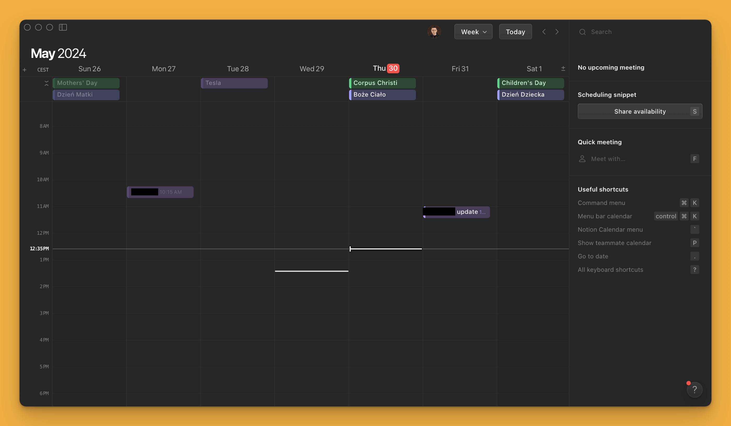 I can add new calendar entries via voice messages to my AI assistant, similar to a task list. The assistant can also check my availability or retrieve events from a specific range. Ultimately, I still occasionally check the calendar myself, and then I use the Notion Calendar app.