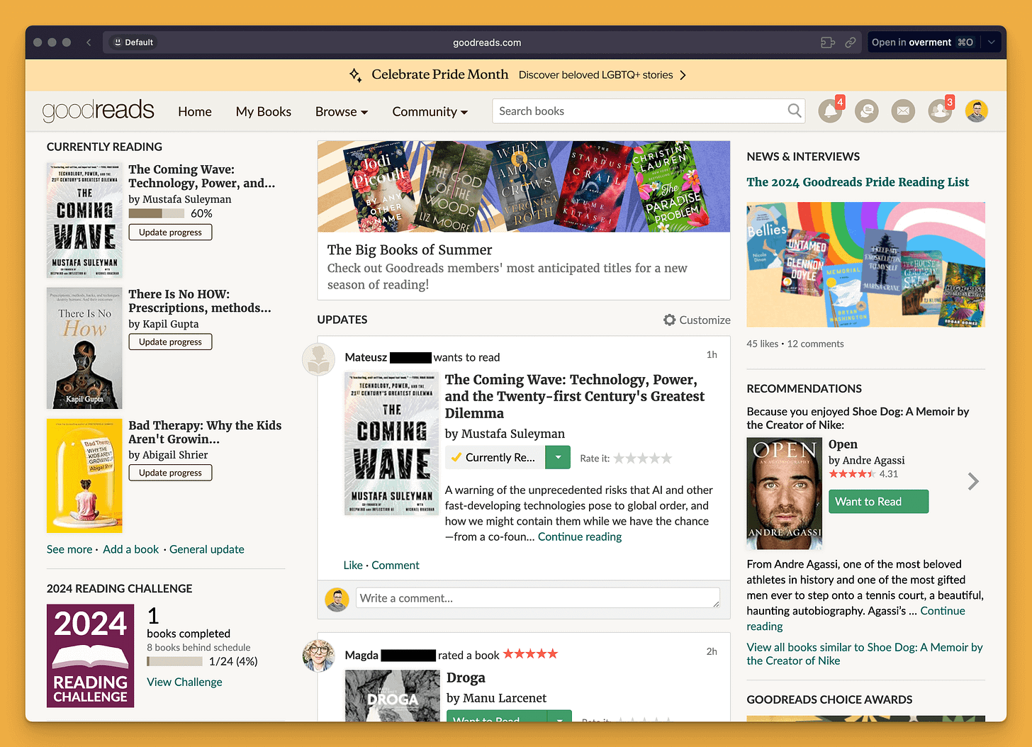 Outside of work, I'm also a fan of books and games, spending my free afternoons and evenings with them. I log all the titles I've read on my Goodreads profile, often sharing highlighted passages or notes.