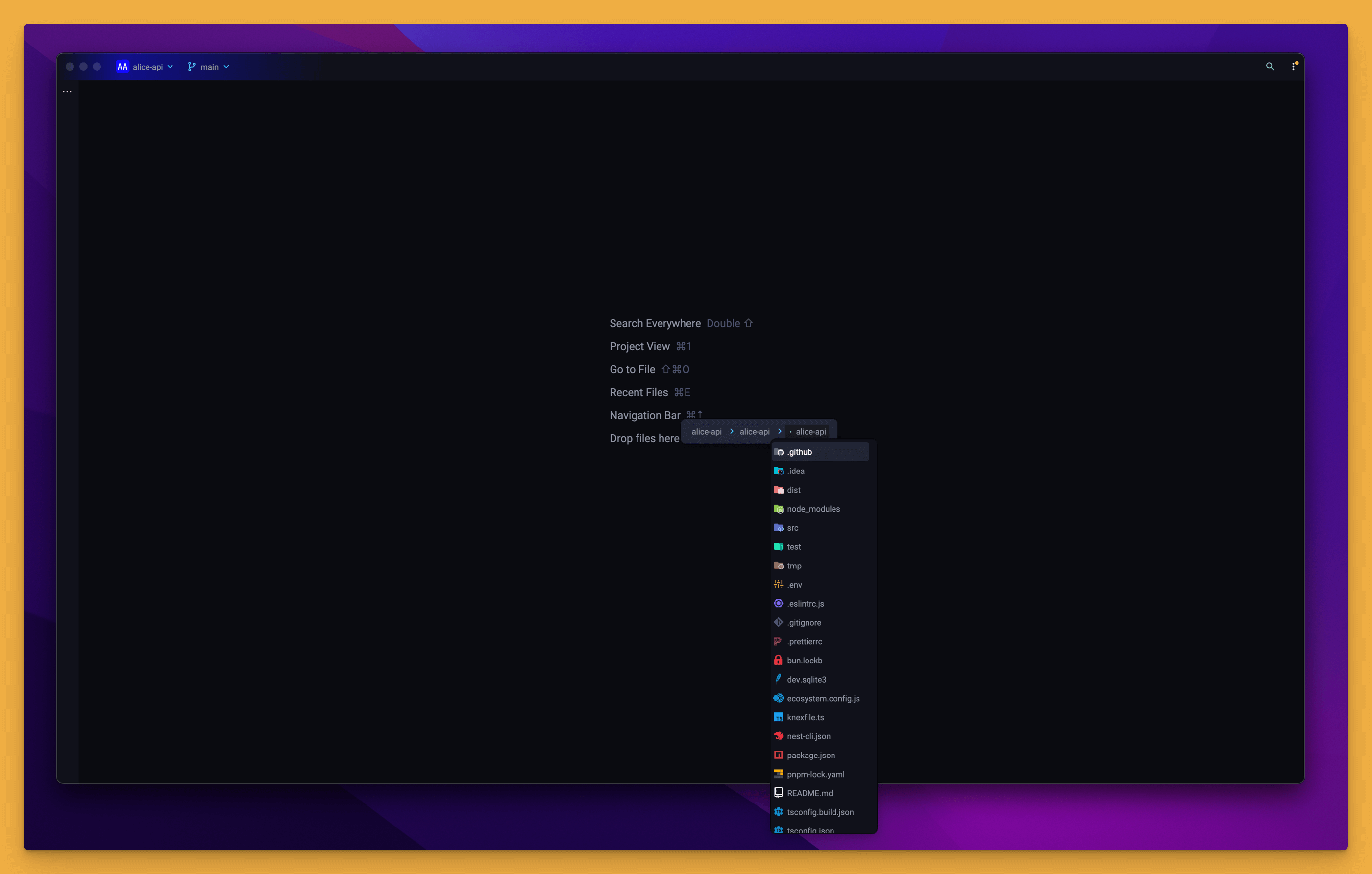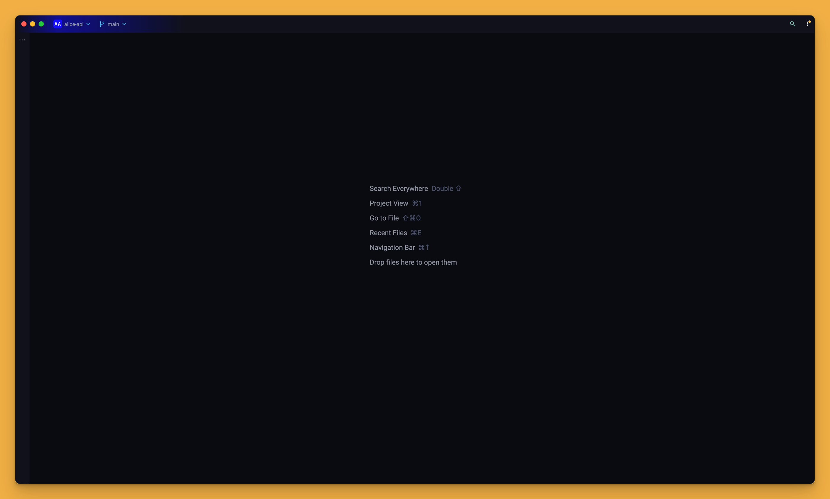 You can see my IntelliJ setup above. I've turned off all panels and extra options since I always use keyboard shortcuts. This makes sense given the IDE's extensive customization options and the inclusion of a "Command Palette" style search.