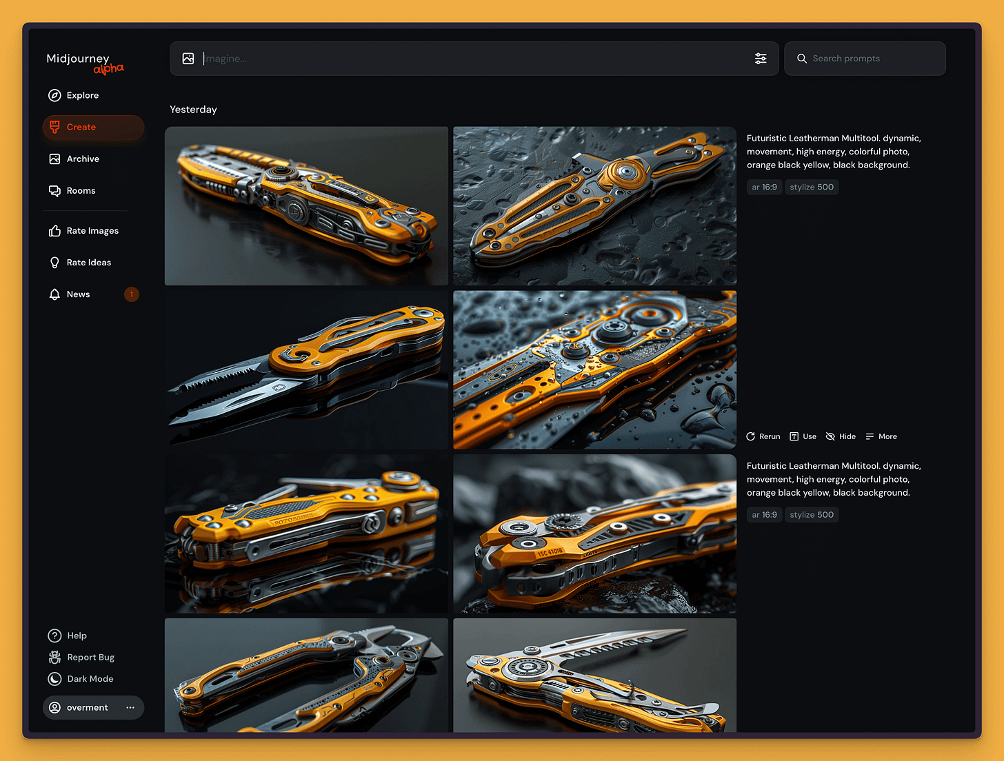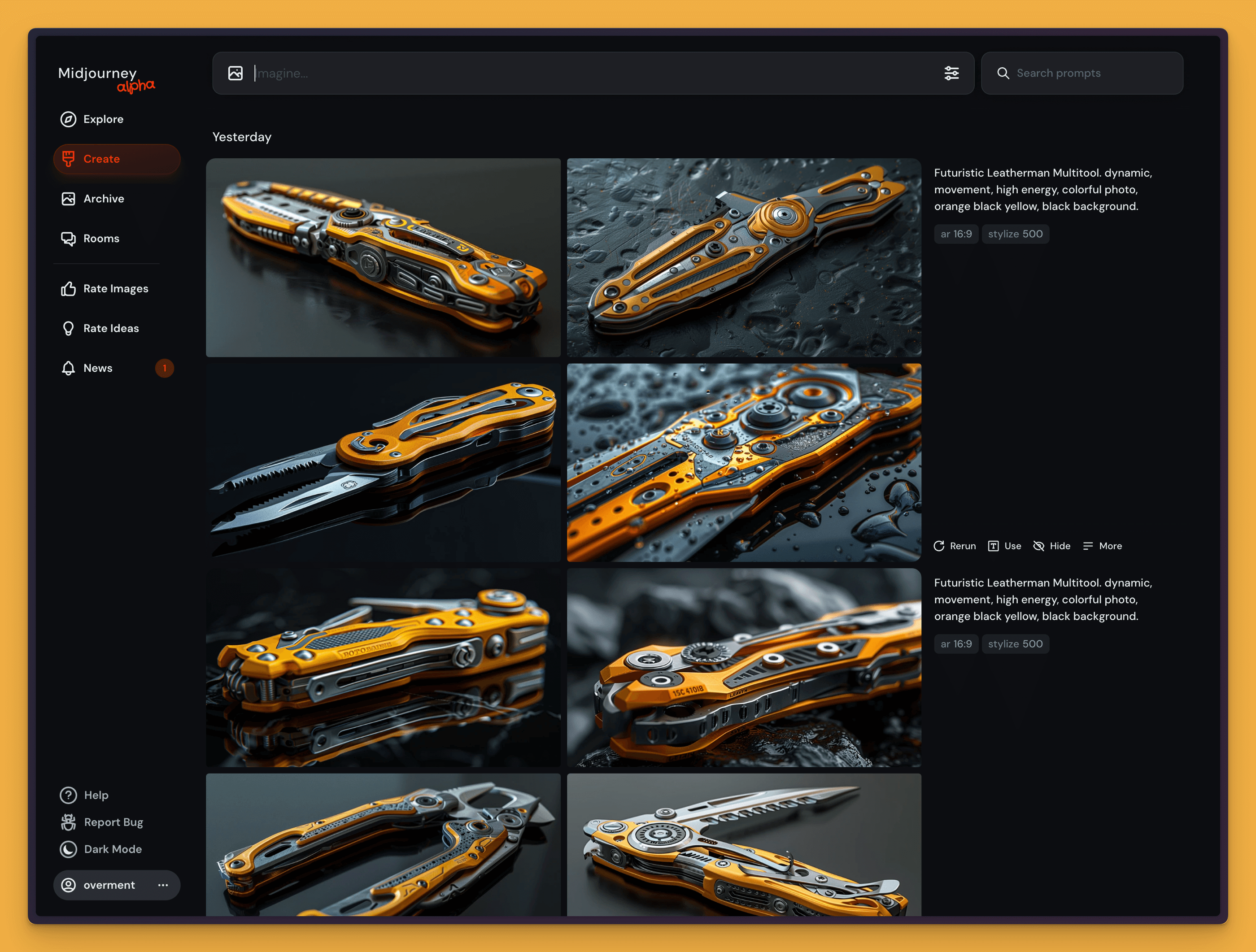 When designing creations, I always use Midjourney Alpha. I generate various graphic or asset variants there, which I often combine in Photoshop.