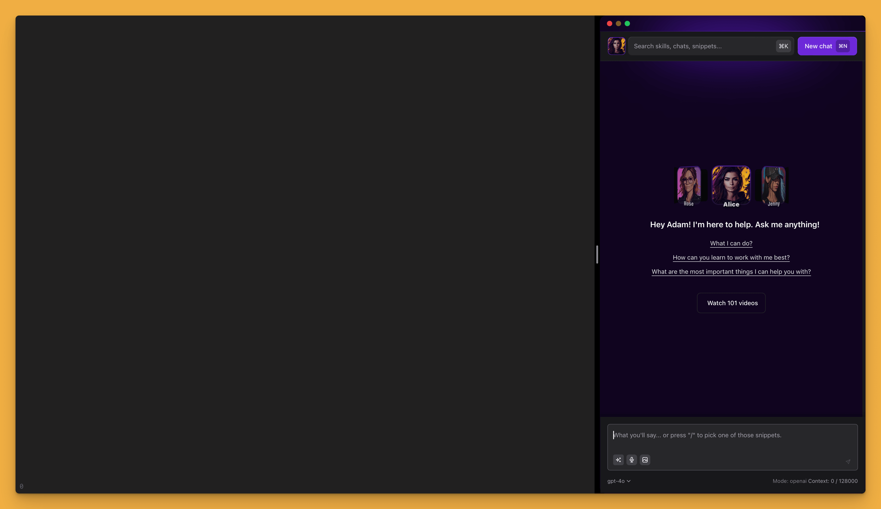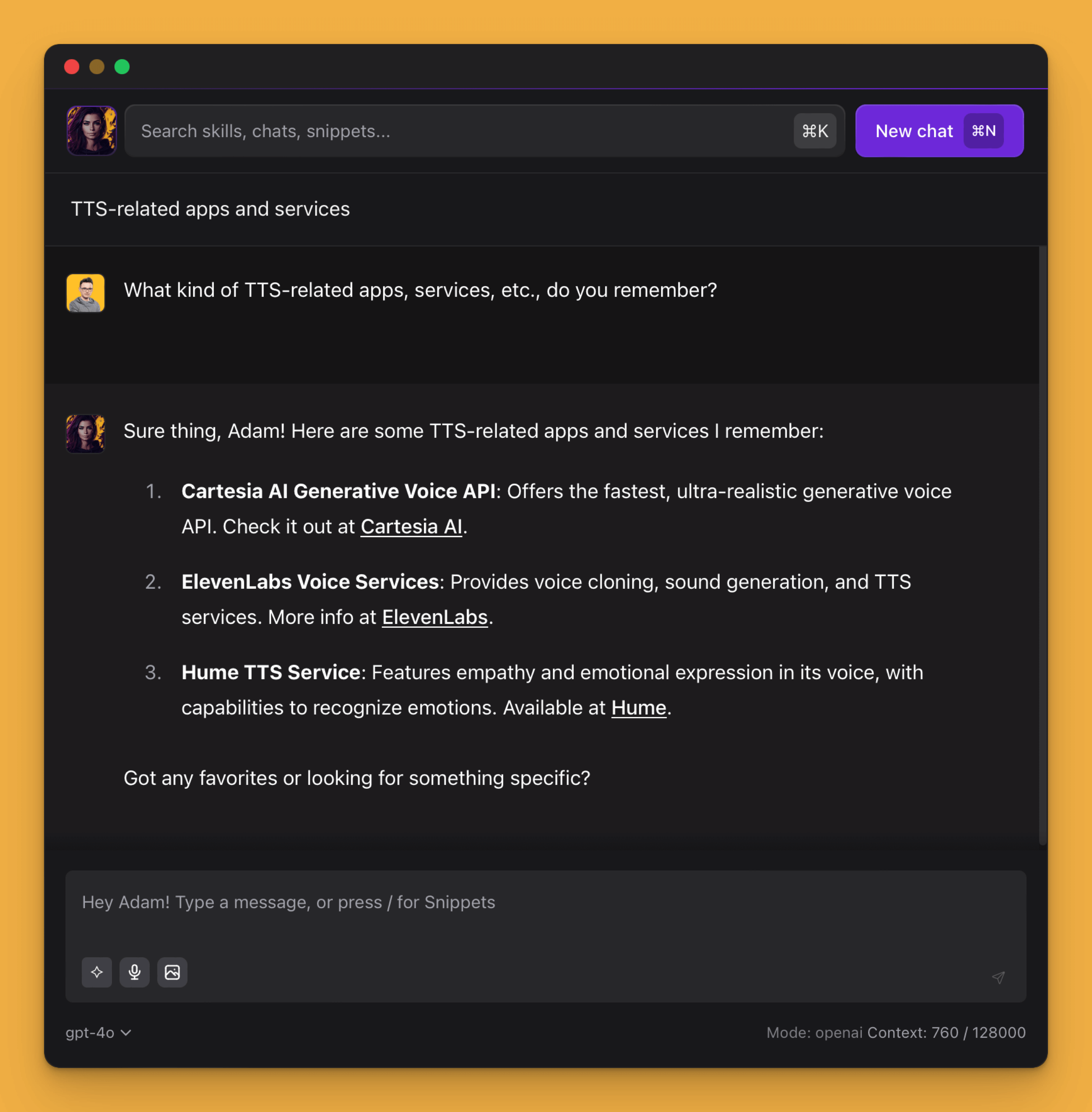 The foundation of the whole system is my custom AI assistant and its long-term memory. Note, this isn't Alice from heyalice.app, but my private app, which I'm gradually making publicly available.
