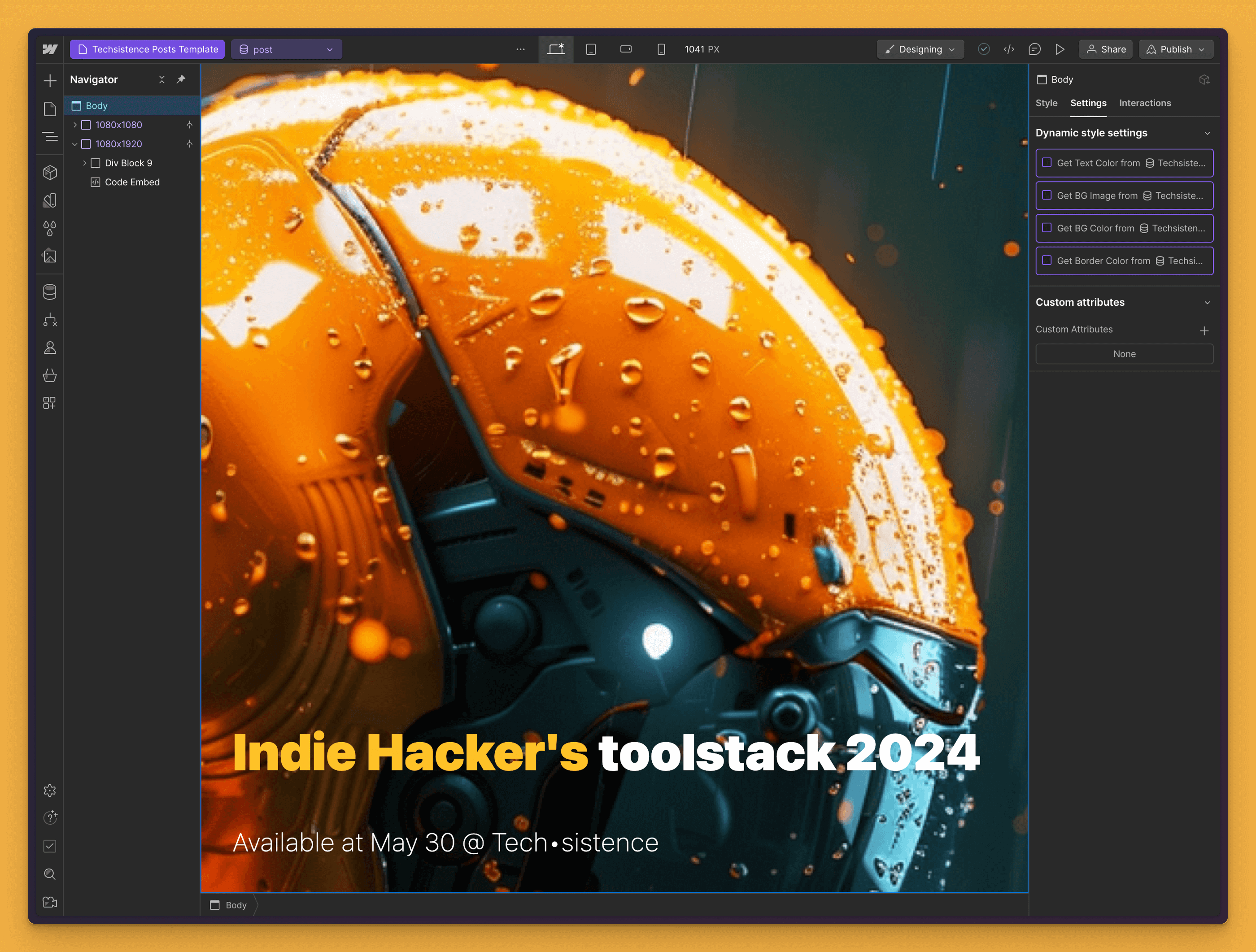 There are creations generated according to templates, where creating new versions involves only text replacement or simple layout editing. In such cases, Webflow becomes my graphic editor.