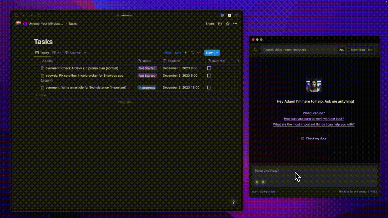 Free access to data and actions opens up space for significant optimization of your daily routine, which I have already demonstrated to some extent with text transformation examples or simple task adding. However, to make this possible, it's necessary to choose tools that won't limit us. Then we'll need to develop skills and reach for ready-made solutions that will allow us to fully exploit the possibilities offered by Generative AI. For now, let's focus on this initial stage.