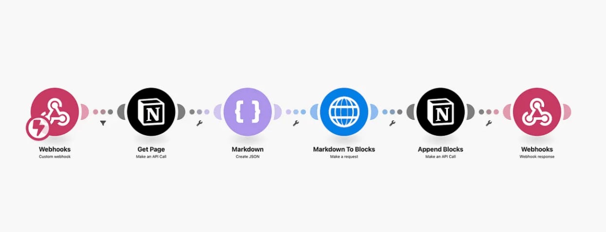 Here is an example of such a simple scenario in make.com, which took over these data and supplemented the CRM in Notion with customer data: