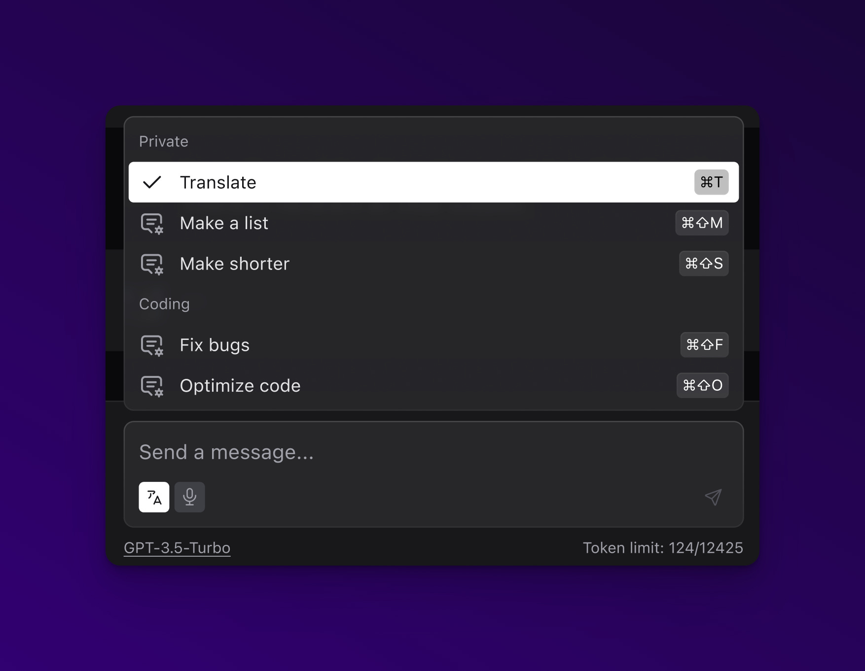 However, we needed to prepare a tool that would allow us to easily refer to such actions and send queries. Of course, most of them would be ideal to launch with a keyboard shortcut and thus the concept of Alice was born - a native macOS application that would allow us to customize our way of interacting with artificial intelligence.