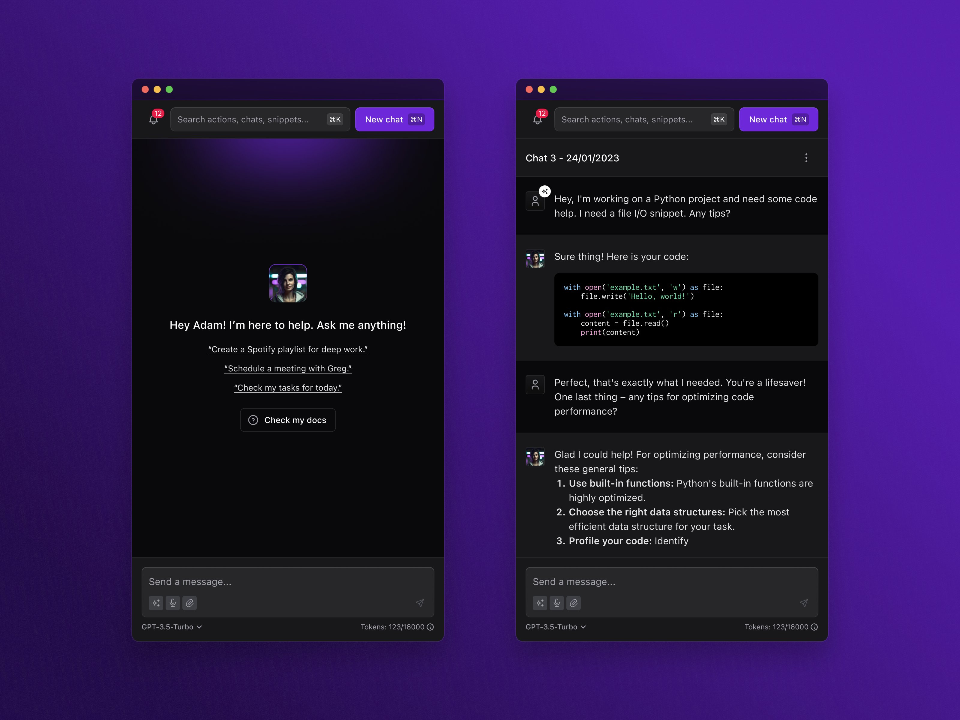 The situation is similar with working on files. ChatGPT currently allows uploading files and working with documents and even if we ignore the fact that most of the time it means unknown errors that it reports, undoubtedly such interaction with the model is very valuable. The problem is that the browser is not a good place to work with files, unlike the operating system, where we have everything at hand and don't have to wait to send the file to the server (not to mention the security issues of those files).